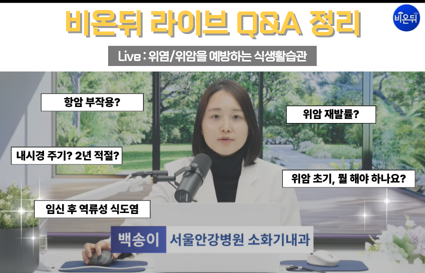 [비온뒤 라이브 Q&A 정리] 위염/위암을 예방하는 식생활습관_소화기내과 전문의 백송이 센터장