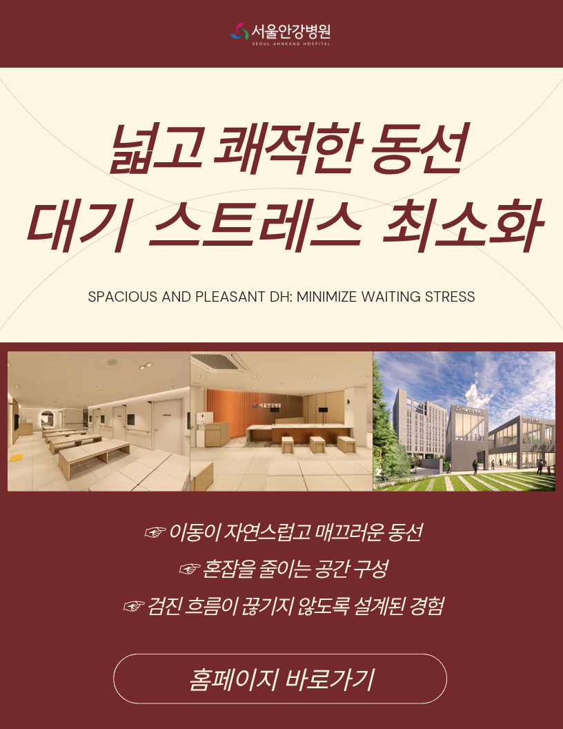 검진에서 가장 피곤한 순간은 검사 자체가 아니라 기다리고, 이동하고, 다시 기다리는 시간일 때가 많습니다. 서울안강병원은 넓고 쾌적한 동선 설계를 통해 대기 시간에서 발생하는 스트레스를 최소화하는 데 집중했습니다.