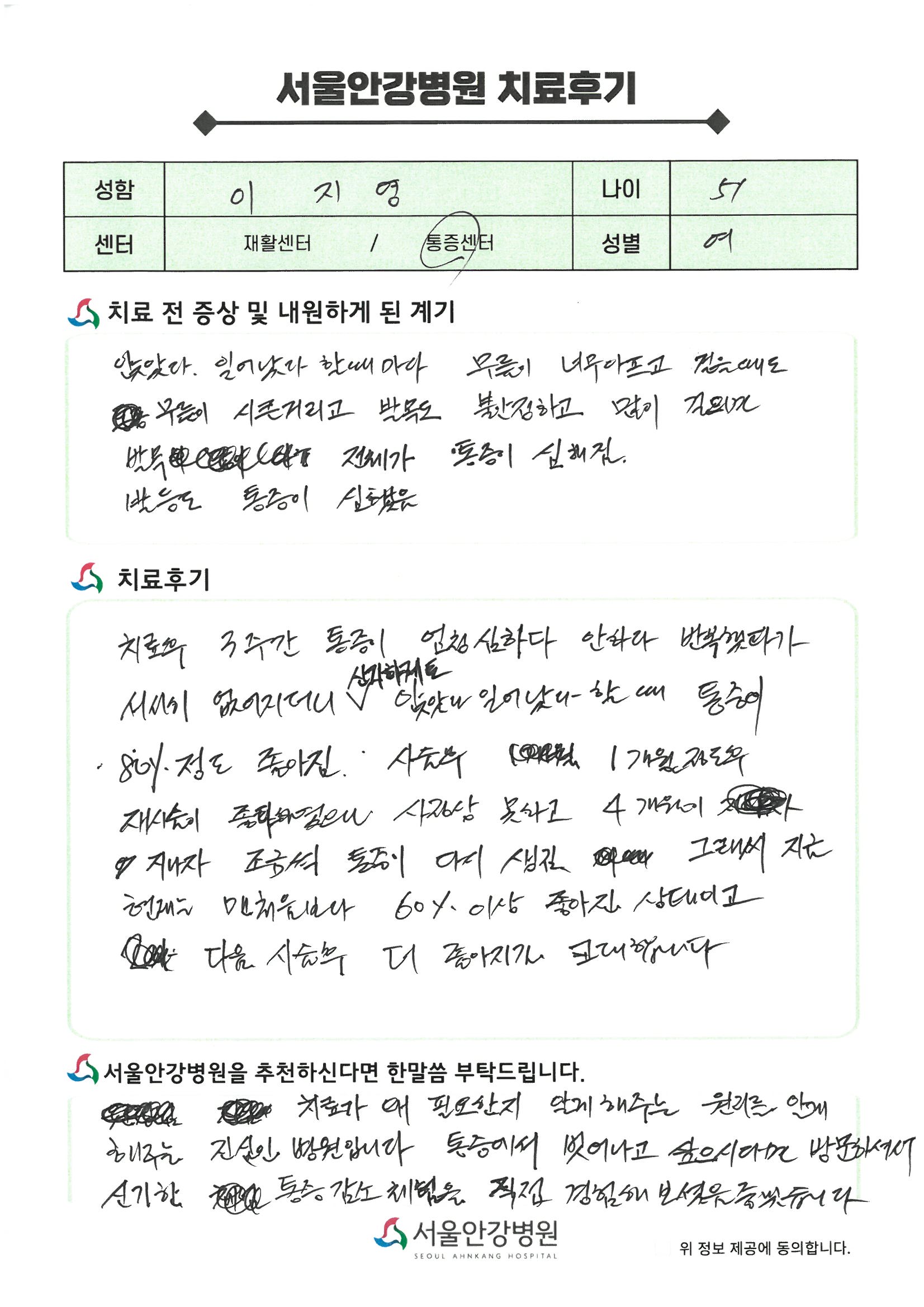 [이O순 환자] 좀 더 낫고 싶은 욕구가 강해져...