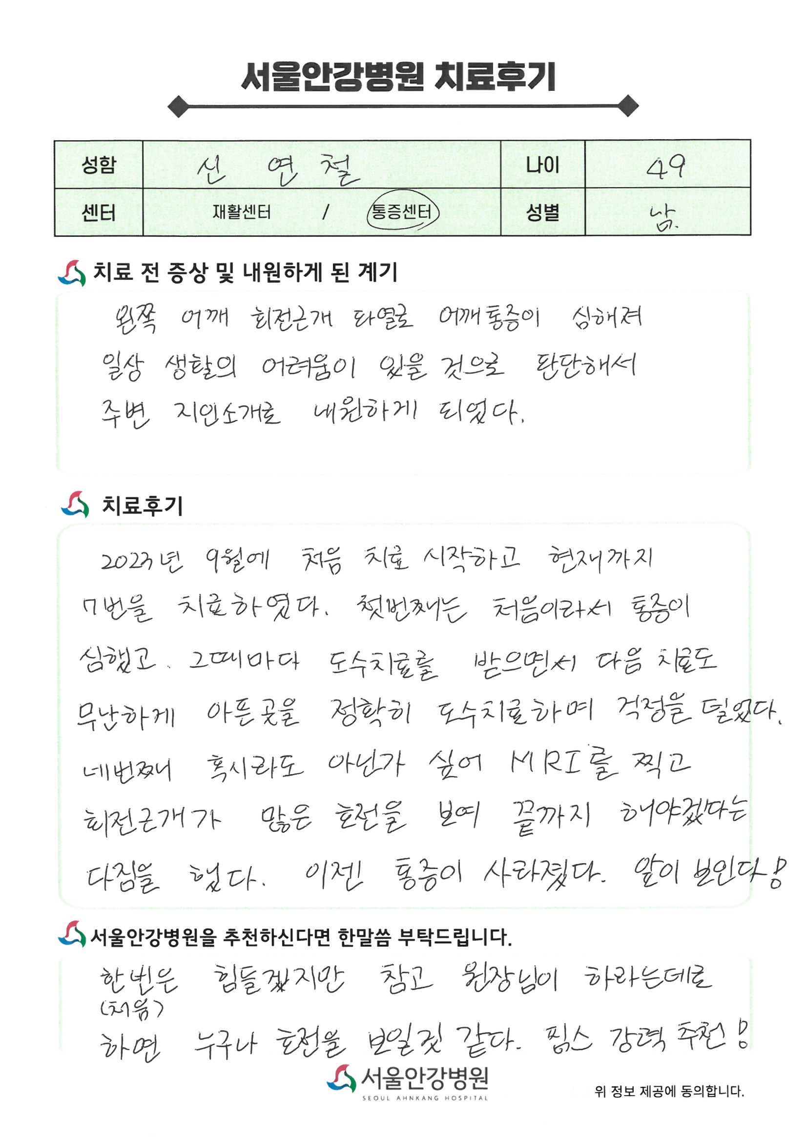 [신O철 환자] 이젠 통증이 사라졌다. 앞이 보인다!