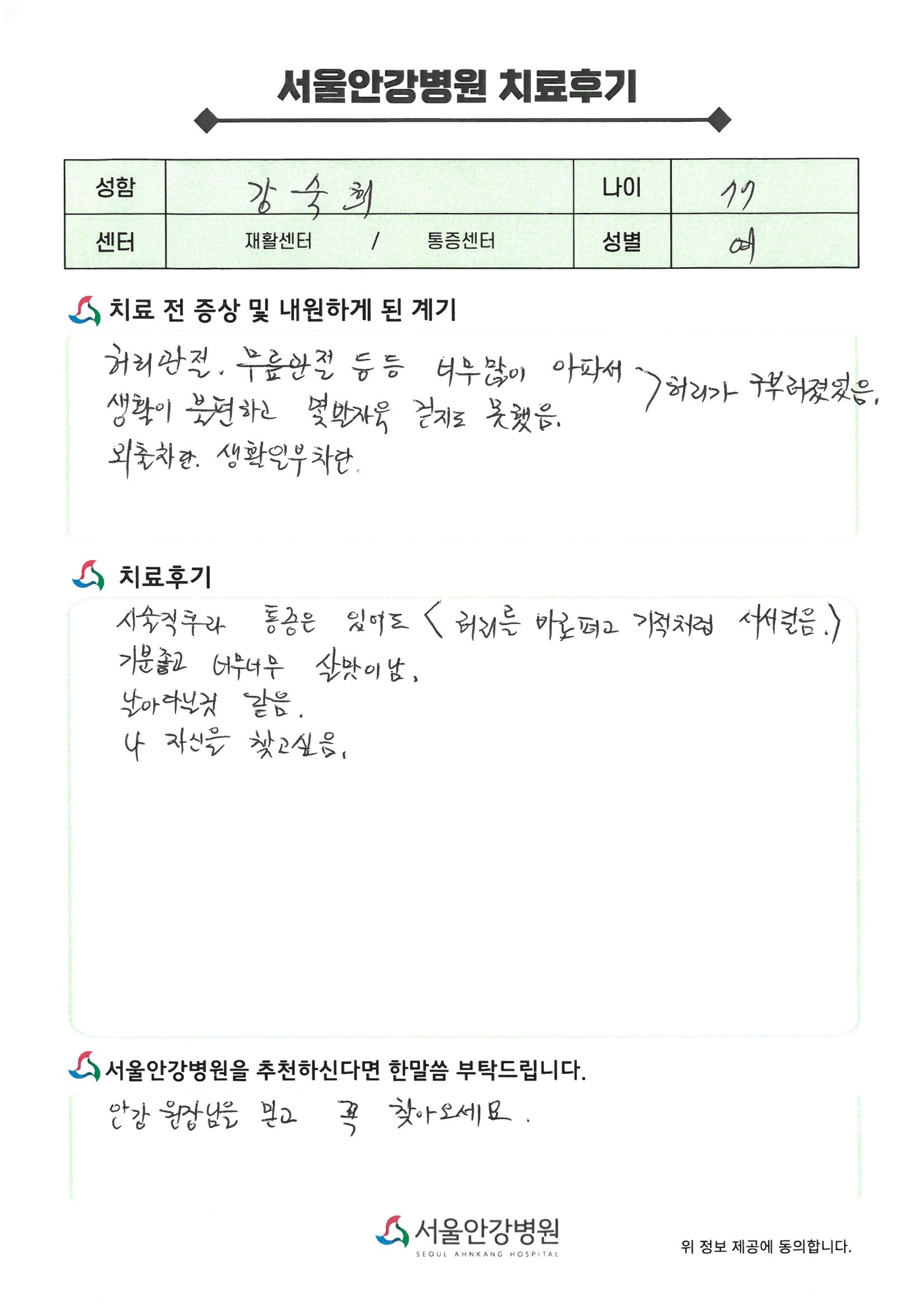 [고O숙 환자] 서울안강병원 선생님들은 모두 실력파들이다