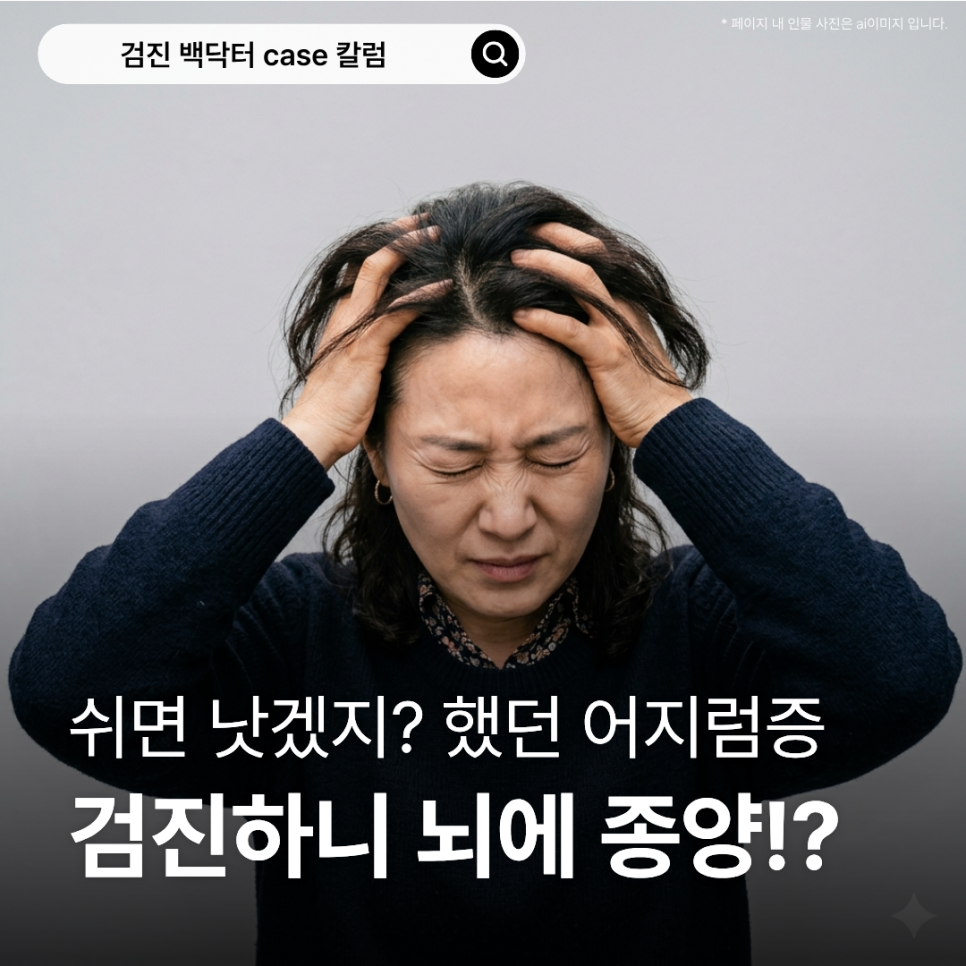 안녕하세요. 서울안강병원 내과·건강검진센터에서 여러분의 건강을 살피는 ‘검진 백닥터’ 입니다. 진료실이나 검진 상담실에서 중년 환자분들을 뵐 때 가장 흔하게 듣는 호소 중 하나가 바로 "원장님, 요즘 자꾸 어지러워요"입니다. 그럴 때마다 환자분들은 덧붙이십니다. "앉았다 일어나면 핑 돌아서 기립성 저혈압 같아요." "귀에 문제가 있는 이석증이겠죠?" "요즘 스트레스가 심해서 그런 것 같아요." 네, 맞습니다. 실제로 기립성 저혈압이나 이석증은 어지럼증의 매우 흔한 원인입니다. 잠시 쉬거나 시간이 지나면 호전되는 경우도 많지요. 하지만 전문의로서 제가 가장 경계하는 것은 '이 흔함에 익숙해져, 몸이 보내는 치명적인 경고를 간과하는 것'입니다. 어지럼증은 결코 가벼운 증상이 아닙니다. 오늘은 제가 직접 경험한, 단순 저혈압으로 생각하고 2년을 방치했던 어지럼증 뒤에 숨어 있던 신경계 종양 사례를 통해, 왜 우리가 어지럼증을 정확히 진단해야 하는지 말씀드리겠습니다.